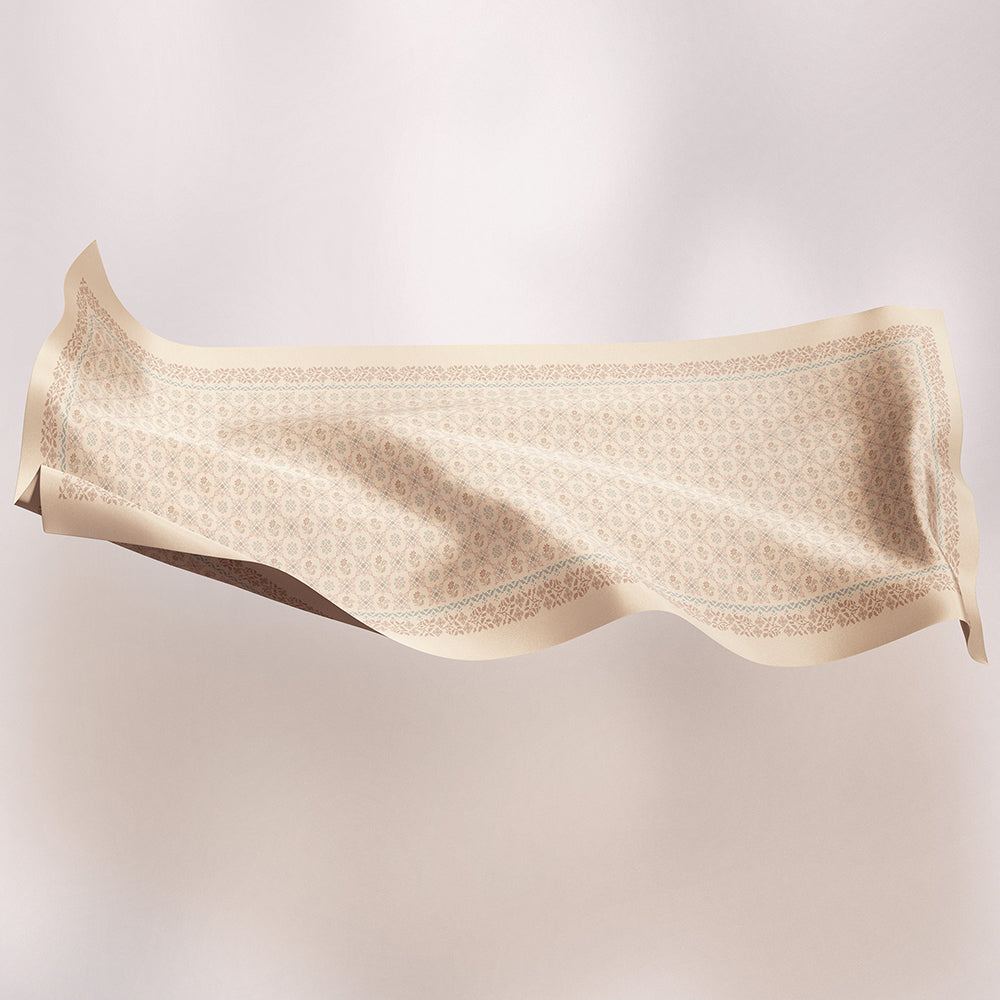 Warm, homey, and full of heart, Cross Stitch brings back the quiet charm of home décor that only appears on special occasions, the pieces that are lovingly kept and proudly displayed. Inspired by hand-crafted embroidery and tablescapes laid out for Raya, this design feels familiar, warm, and gently nostalgic. Cross Stitch wraps tradition in a modern ease in a design that is stitched with care, worn with heart.