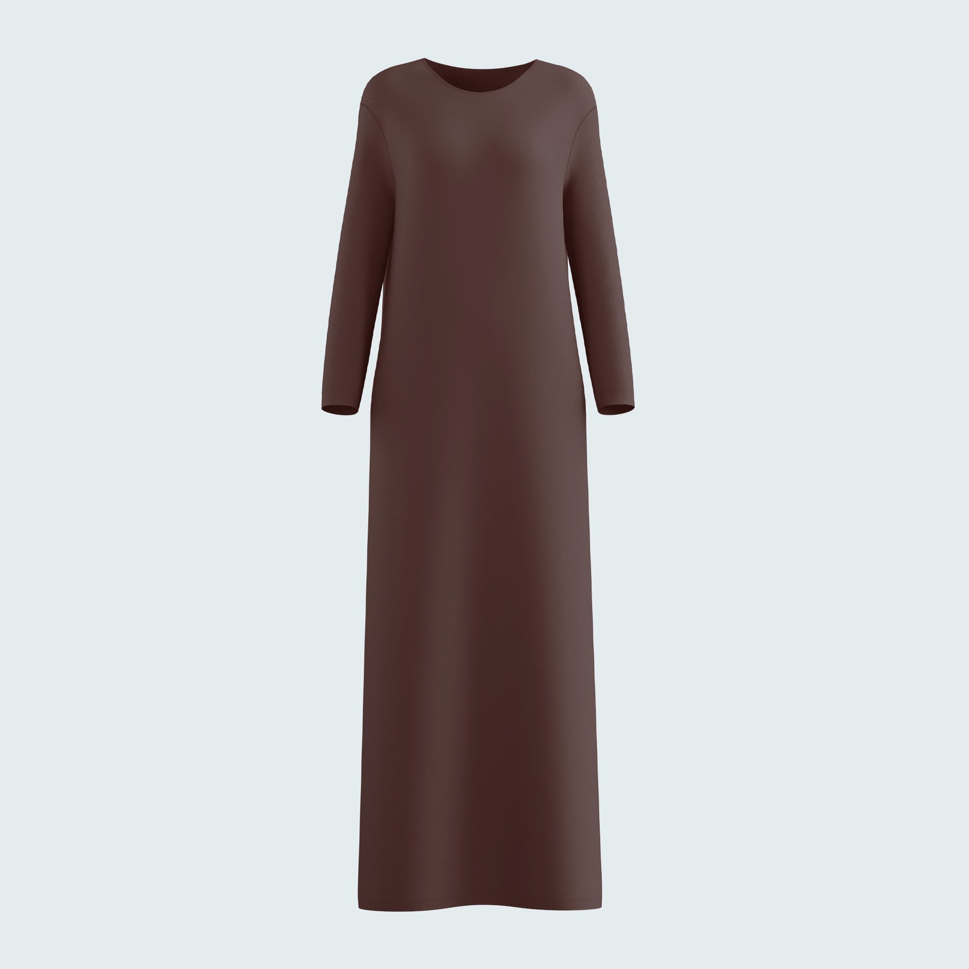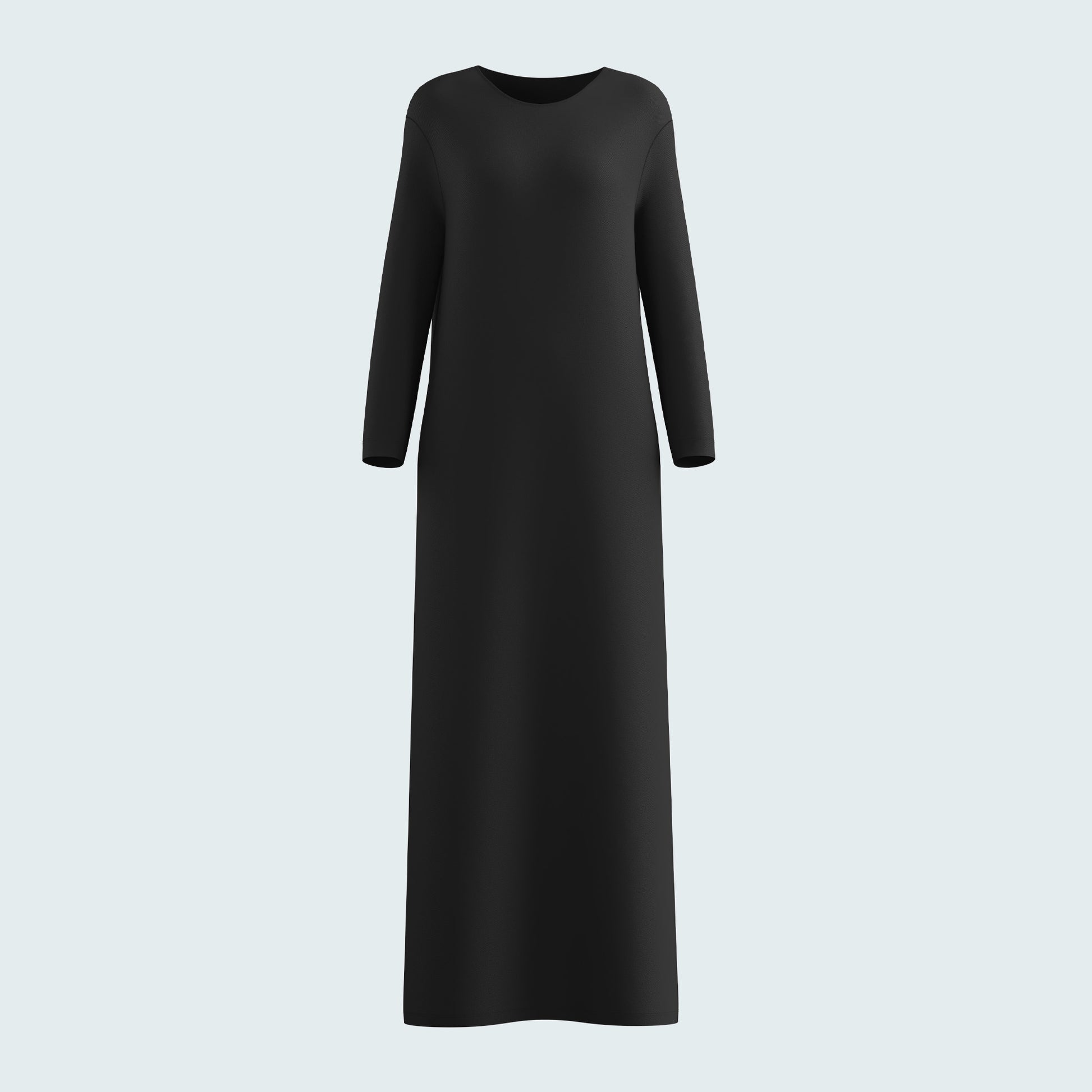 Full length long sleeve inner dress provides full opacity coverage for sheer garments while keeping you cool and comfy with light and breathable material.