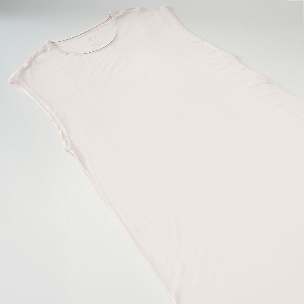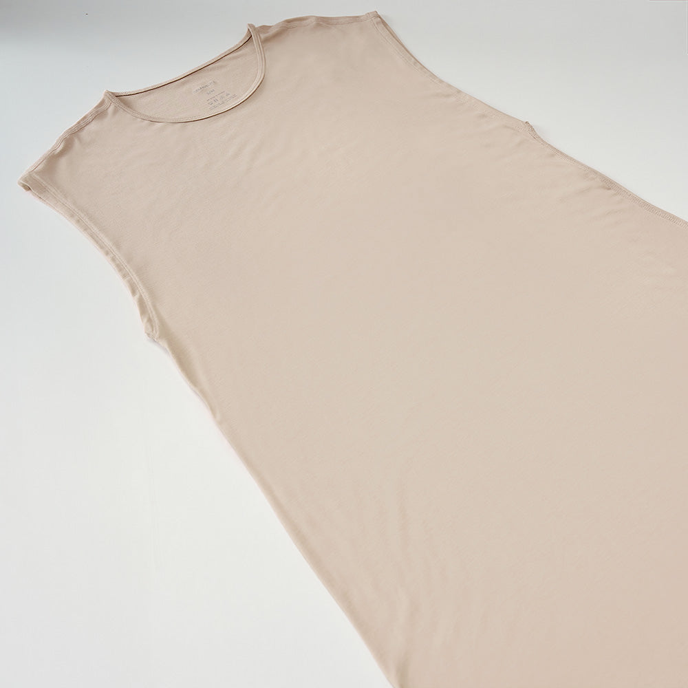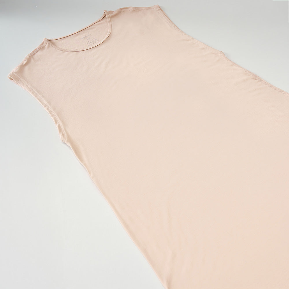 This round neck vest with seamless wide shoulder design is made to minimise the appearance of wearing an inner, while providing full bodice coverage and a comfy, cottony silk feel. Zippered front at the front for nursing ease.